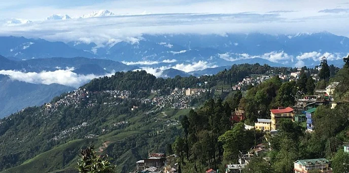 The Himalayan mountain peaks of mount Kanchenjunga, Kabru, Pandim, Sinolchu are clearly visible from Kalimpong.
